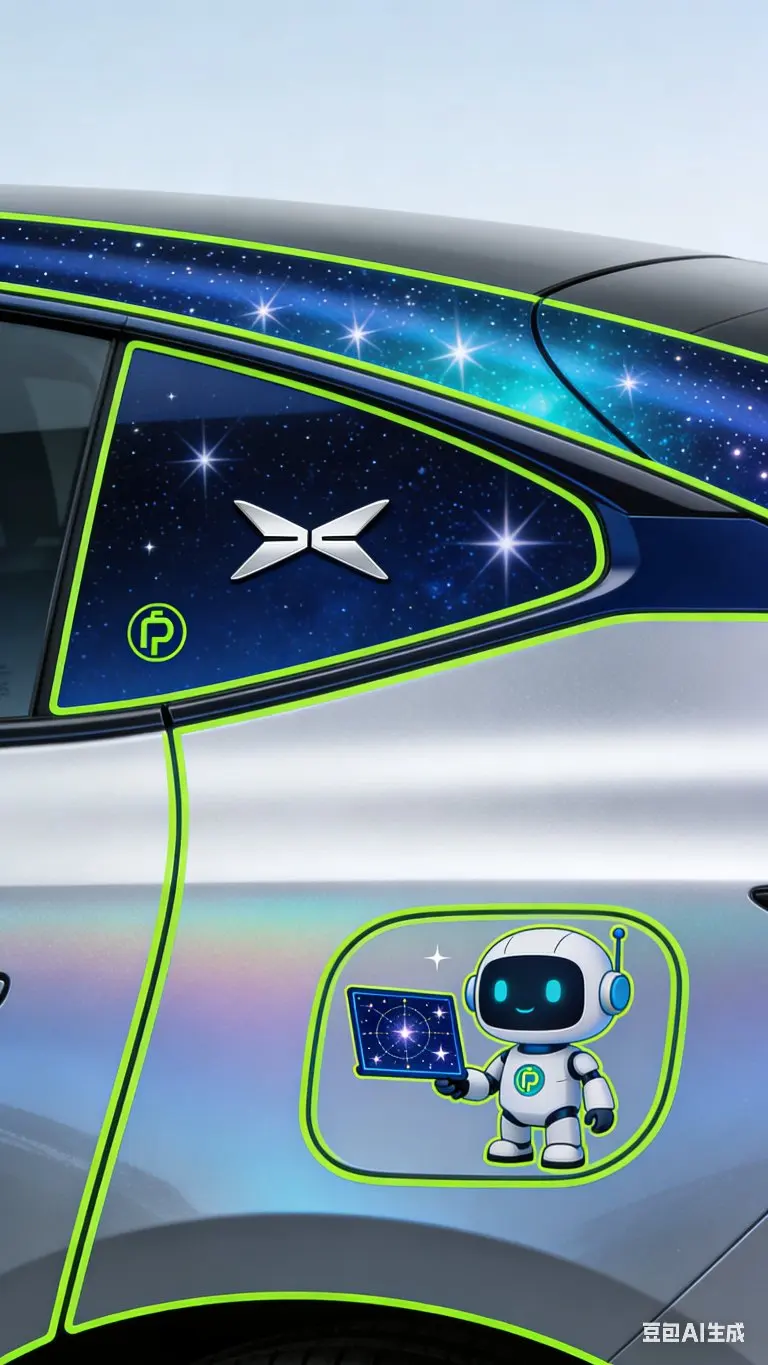这款车贴以「星途小鹏」为主题,将小鹏G7增程版的科技基因与宇宙探索的浪漫感融合。小P作为智能领航员,指引着小鹏汽车在智能出行的星途上不断前行,既体现了品牌对未来出行的探索精神,也承载了鹏友们对科技与自由的向往。车贴设计兼顾了辨识度与艺术感,简约的线条和渐变色彩能适配不同车身,让每一位车主都能成为路上的“星途领航者”,彰显个性与品牌认同。