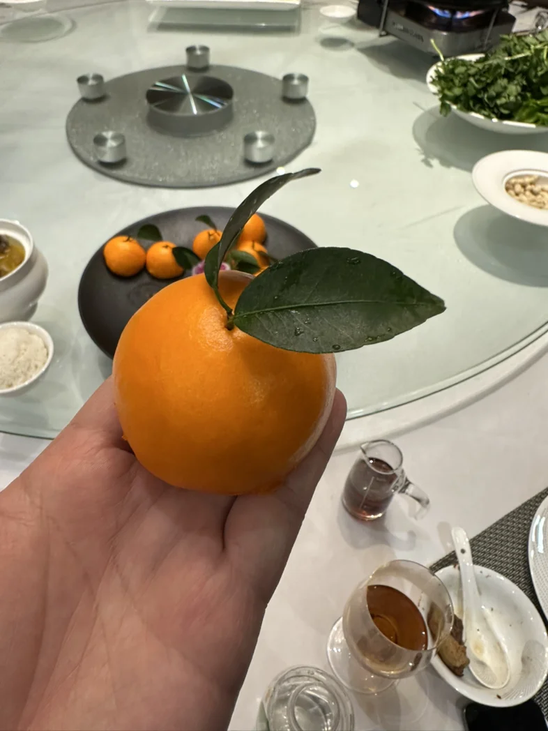 在禅城粤菜馆吃了个很像橘子的包子,叶子是真叶。