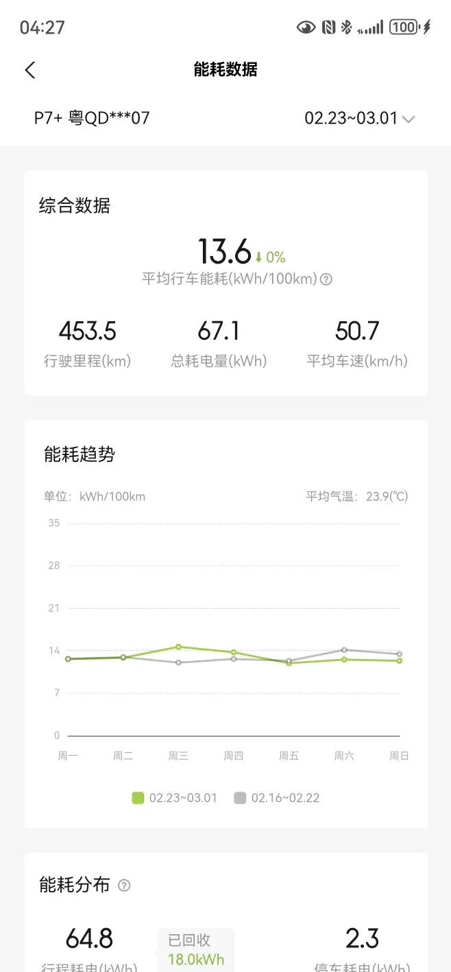 - 02.16-02.22与02.23-03.01:平均车速均突破50km/h,电耗依旧稳定在13.6kWh/100km。