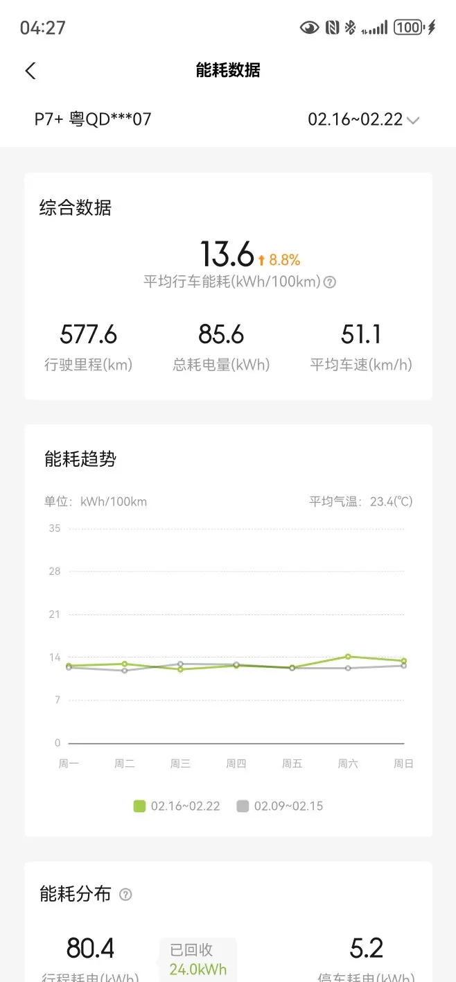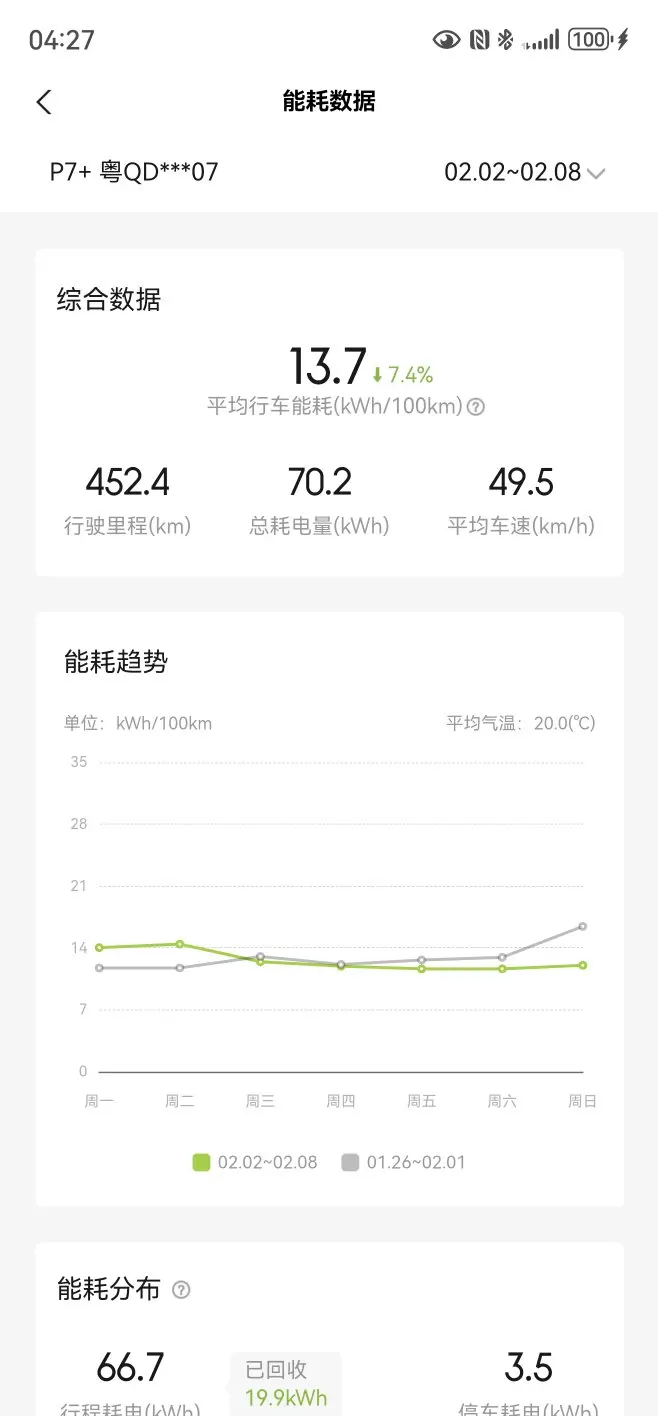 - 02.02-02.08:平均车速49.5km/h,平均电耗13.7kWh/100km;