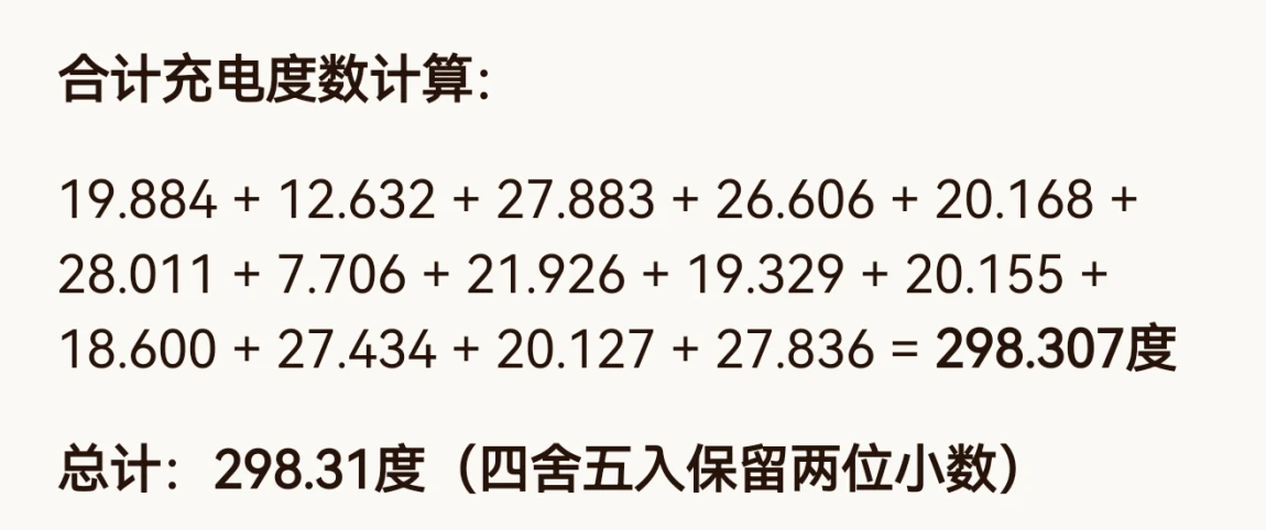 - 整月电费:298.31 × 0.3 ≈ 89.49 元