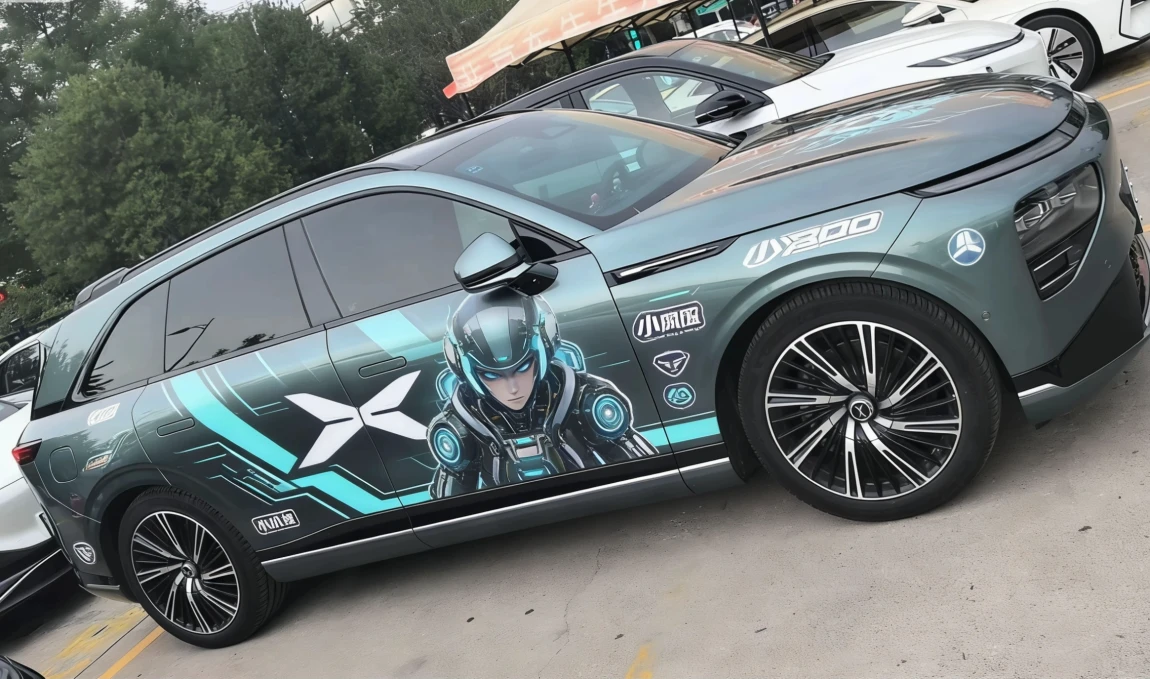 以小鹏IRON机器人为核心,采用青蓝渐变的科技线条与X车标贯穿车身,将未来感机甲形象与G9的流线型车身融合,象征智能出行与赛博科技的碰撞,彰显鹏友对未来出行的先锋态度。
