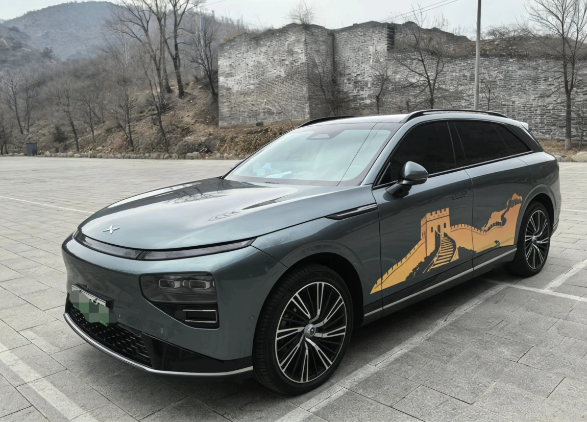 以流动的银白线条从X车标向两侧延伸,模拟能量流动的视觉效果,与G9的贯穿式日行灯呼应,强化车辆的科技感与未来感,象征智能动力的澎湃输出。