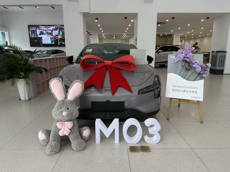 看同事买了辆小鹏M03,觉得车型很好看,刚好家里也是有辆QQ冰激凌小电车的,两年开下来对比油车电车确实很香,就考虑把油车马自达3昂克赛拉给换掉,当即就去4s店看车了,销售小哥哥还邀请我们试驾了,和我老公两个人试驾下来都很满意,次日就确定把它买下#我的提车作业#