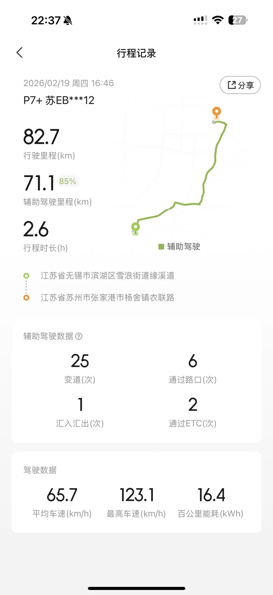 新年新气象,开工大吉! 85%的路程都由小p驾驶,满载四人,高速跑满限速仅仅16.4kwh,小p的能耗控制真是厉害!