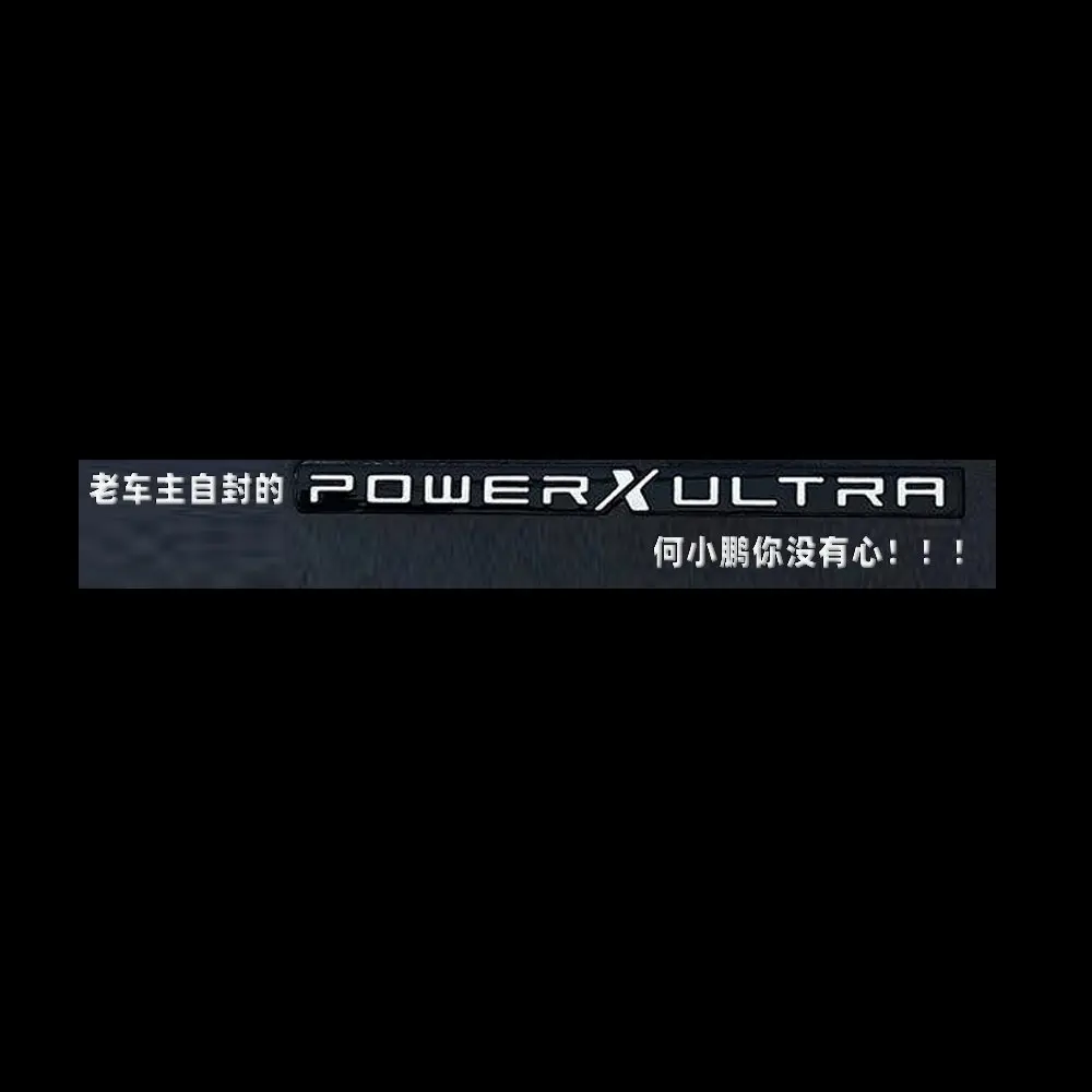 这款车贴以小鹏官方 “POWER X ULTRA” 尾标为视觉基底,用 “老车主自封的”“何小鹏你没有心!!!” 的自嘲式文字,精准戳中老车主的共鸣点:
