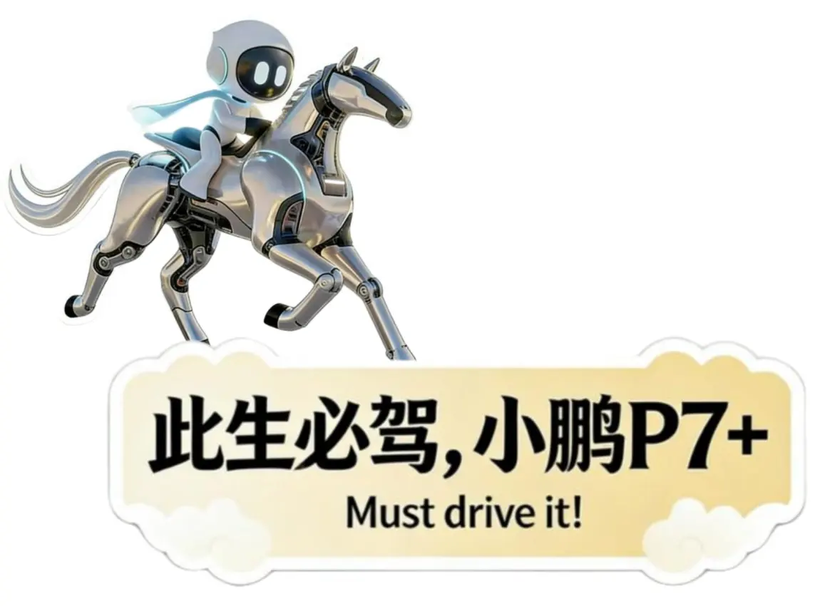 #鹏友共创# 谁的DNA动了!小鹏P7+车主专属车贴来啦🥳小P骑马造型太会了,科技感拉满又有中式浪漫「此生必驾,小鹏P7+」+「Must drive it!」直白又热血,贴在车上就是行走的身份认同开上P7+,去奔赴每一场山海吧!