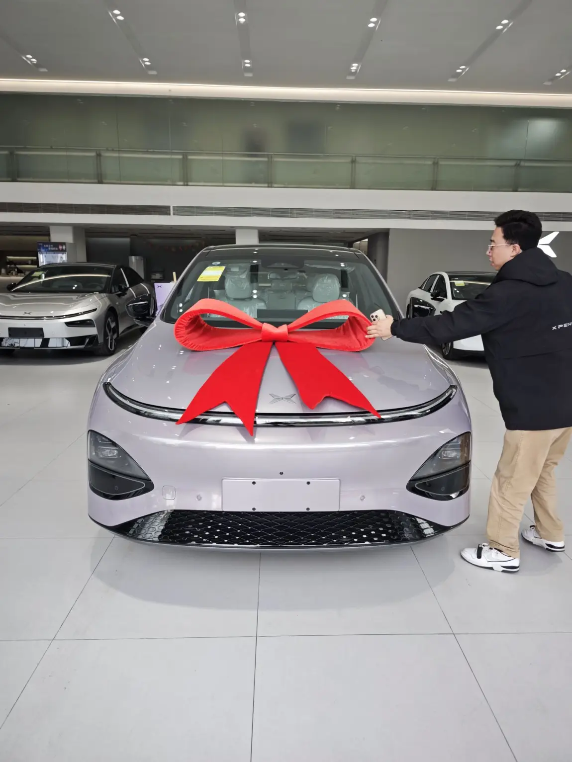 提车这天,西安的风里带着古城特有的厚重与开阔。当那台浅紫色的小鹏G6静静停在展厅中央,巨大的红色蝴蝶结在引擎盖上舒展时,我知道,属于我的“风”,终于来了。