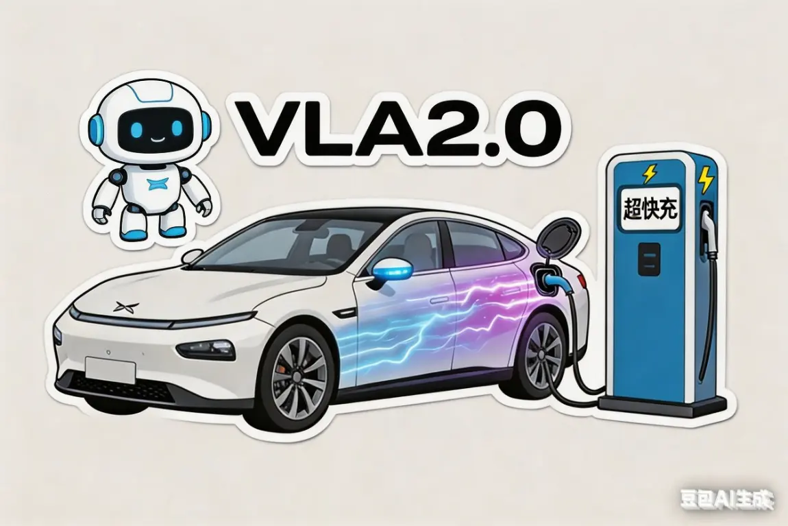 ①为什么用老P7作为主元素,因为小鹏是从老P7开始,而我也是一名老P7车主,我们一起见证了小鹏汽车的起起落落以及刚发布的VLA2.0。②二代VLA最近也是宣传的很多,大摩和新华社也对其赞赏有加,所以我加上了VLA2.0的标识,细节上还加上了智驾小蓝灯,与VLA2.0相呼应。③图中P7连着快充桩充电,为什么快充桩上没带小鹏logo,因为小鹏快充不认桩,在哪充都快。④快充时有电流声音,因此我加上了蓝色的电流。⑤图上加上了Q版元气小P,目前小鹏总也是全力押注AI具身机器人,从小P到IRON,我们老车主也是一路见证过来的,这里还有一个细节,小P略微向右看着VLA2.0,他也是小鹏发展十多年长河里的见证者。