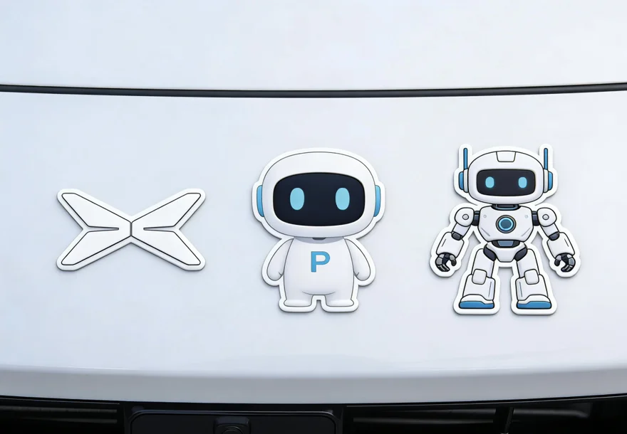 #鹏友共创# 以极简线条为语言,将小鹏品牌标识与智能机器人形象解构重组,在克制的留白中勾勒科技温度:1️⃣品牌X标:用利落折线锚定品牌基因,传递「探索未来出行」的核心态度。2️⃣机器人形象:以圆润轮廓与干净线条塑造智能伙伴的亲和感,弱化机械感,强化「智能陪伴」的情感联结。3️⃣整体风格:删繁就简,用黑白线条与低饱和点缀,让科技感与艺术感平衡共生,既呼应小鹏「智能、未来、纯粹」的品牌内核,也让车贴成为流动的「科技美学符号」,在日常行驶中传递对未来出行的浪漫想象。