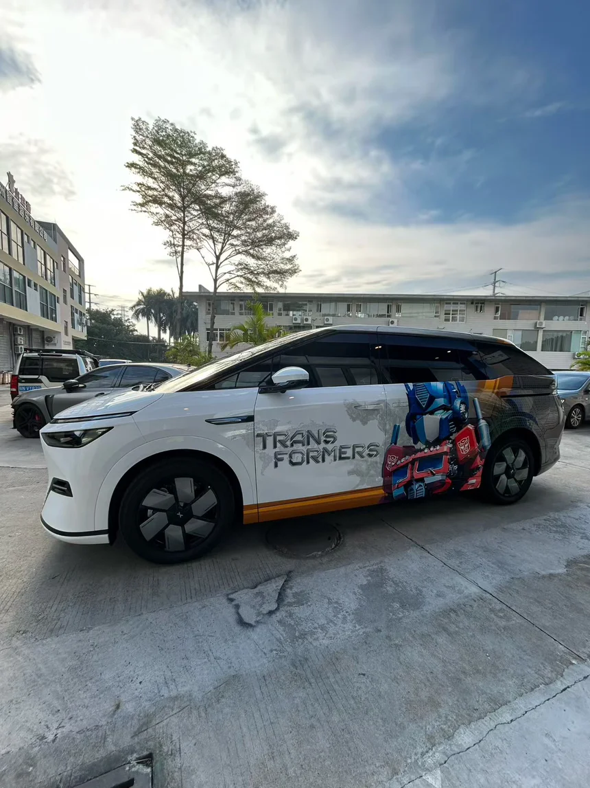 ✅ 选图技巧:优先选高清无锯齿图案,避开车身折线处,我选的擎天柱红蓝主色+大黄蜂黄黑撞色,完美贴合X9大气轮廓,不突兀。