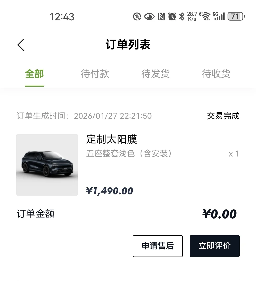 新车到手之后我第一时间在咱们小鹏商城积分兑换了定制太阳膜,最开始几天还没去贴太阳膜的时候,开着我的小鸡柳出去真是晒成狗,前排不管是主驾还是副驾都是坐不住的,晒得不行,下午用车的时候会特别容易疲劳,太阳晒的很困。后来贴完太阳膜之后的感觉就完全不一样了,坐在里面能明显感受到温度变化,整个前排都能明显感受到降温,开车再也没有那种晒的想睡觉的感觉了,体验真的是非常不错,家里其他人开着也觉得很舒服,这个膜贴的还是非常不错的,贴膜的同学也很认真负责,对接流程也很顺畅,大赞!