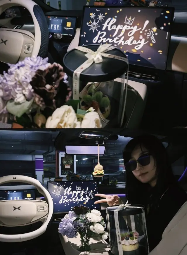 三月是我的生日月,在小鹏p7+的智能座舱里,布置了鲜花与蛋糕,大屏播放着“Happy Birthday”,把平凡的日子过成了仪式感满满的纪念日。
