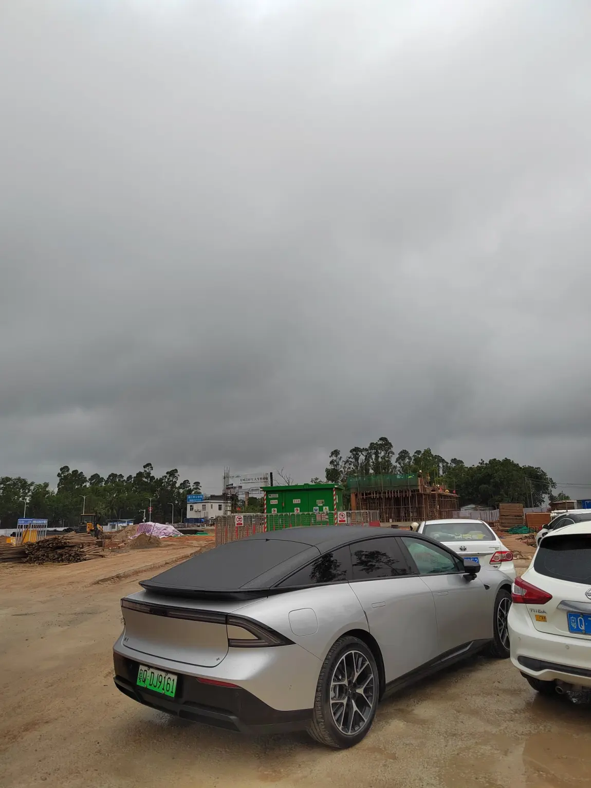 赏花的地方不让停车,都停到到工地。
