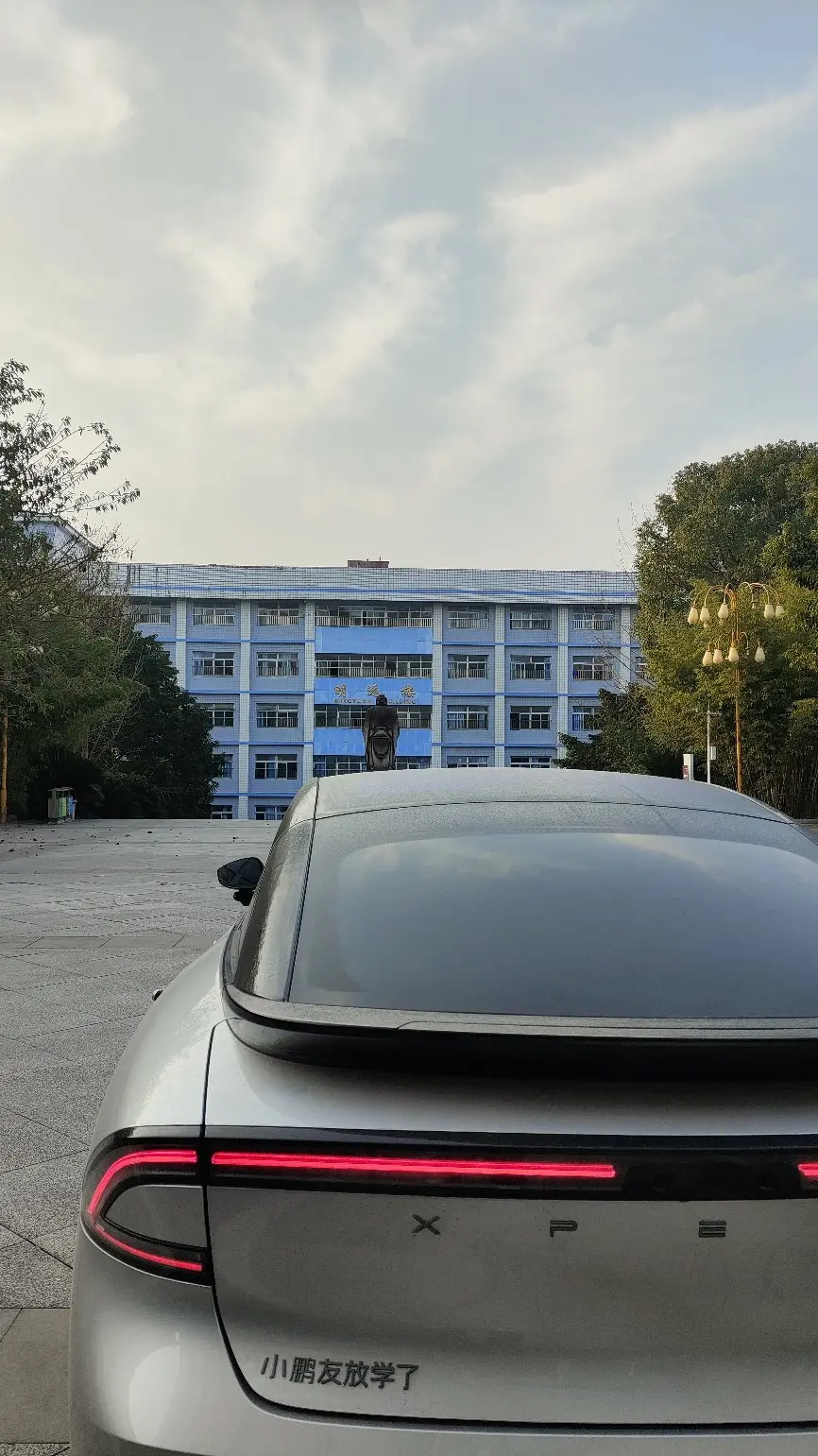 开着小鹏来母校,这次是真的放学了