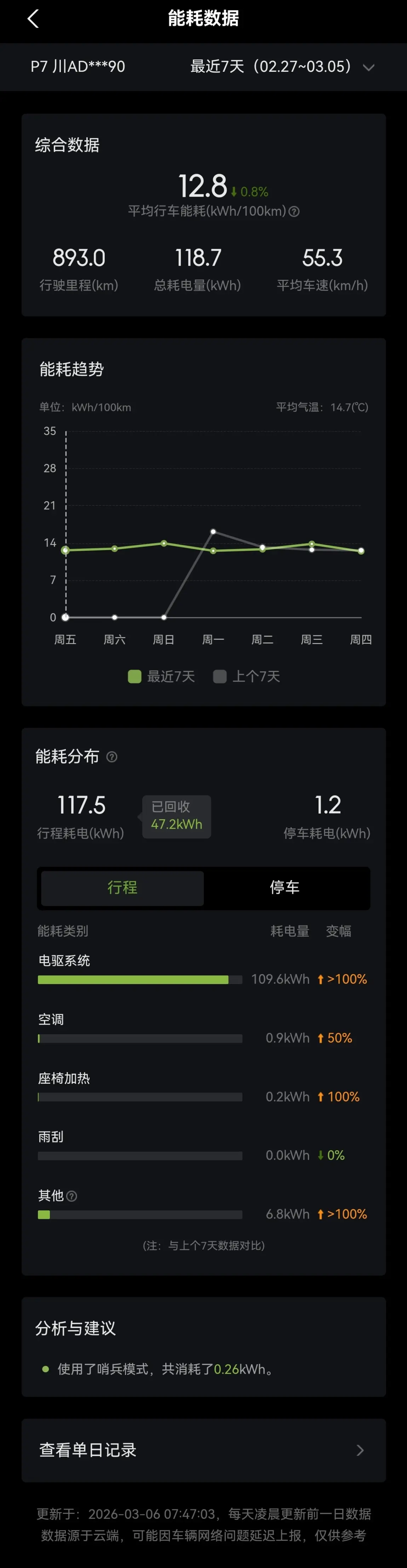 气温很关键,升温了电池续航也表现的漂亮,单次长距离也有利于能耗表现,老骥伏枥春天的气温还能开出1:1的续航。