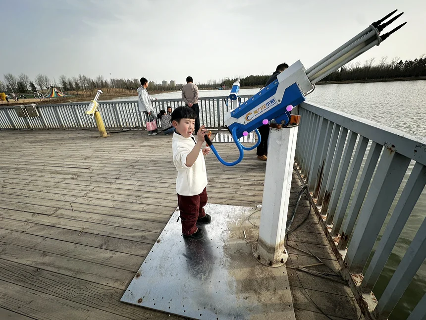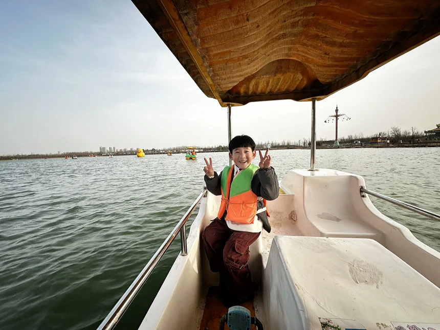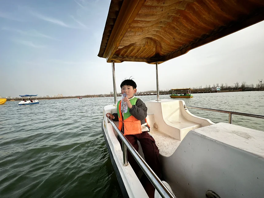 租了一条脚踏船,我们爷俩晃晃悠悠地划到湖心。儿子非要自己掌舵,小胳膊小腿蹬得起劲,额头上沁出细密的汗珠。我问他累不累,他摇摇头:“不累!爸爸,你看水里面有云!”那一刻,我突然觉得,春天最美的风景,其实就在孩子的眼睛里。