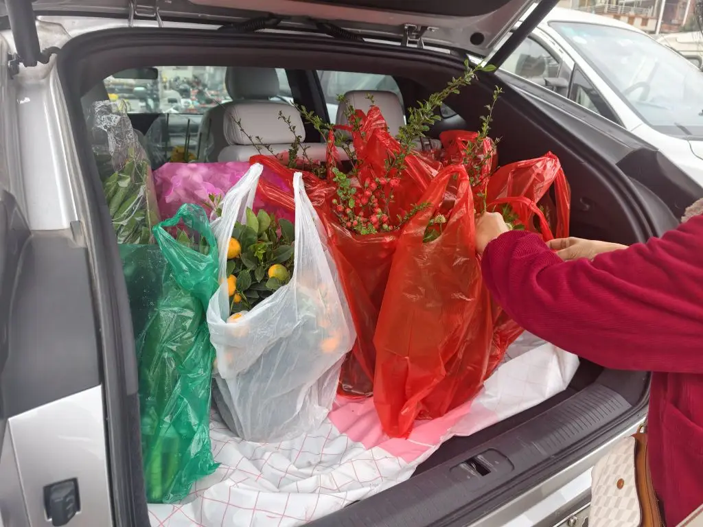 赏花,春节期间开车小鹏g6采购年花