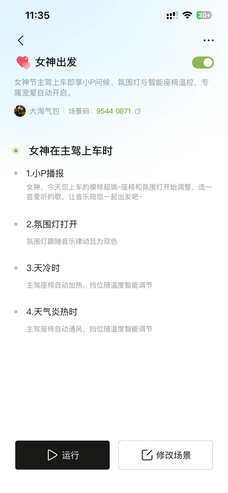 女神节,也是用上了专属场景码,一上车,小P就祝福我了。