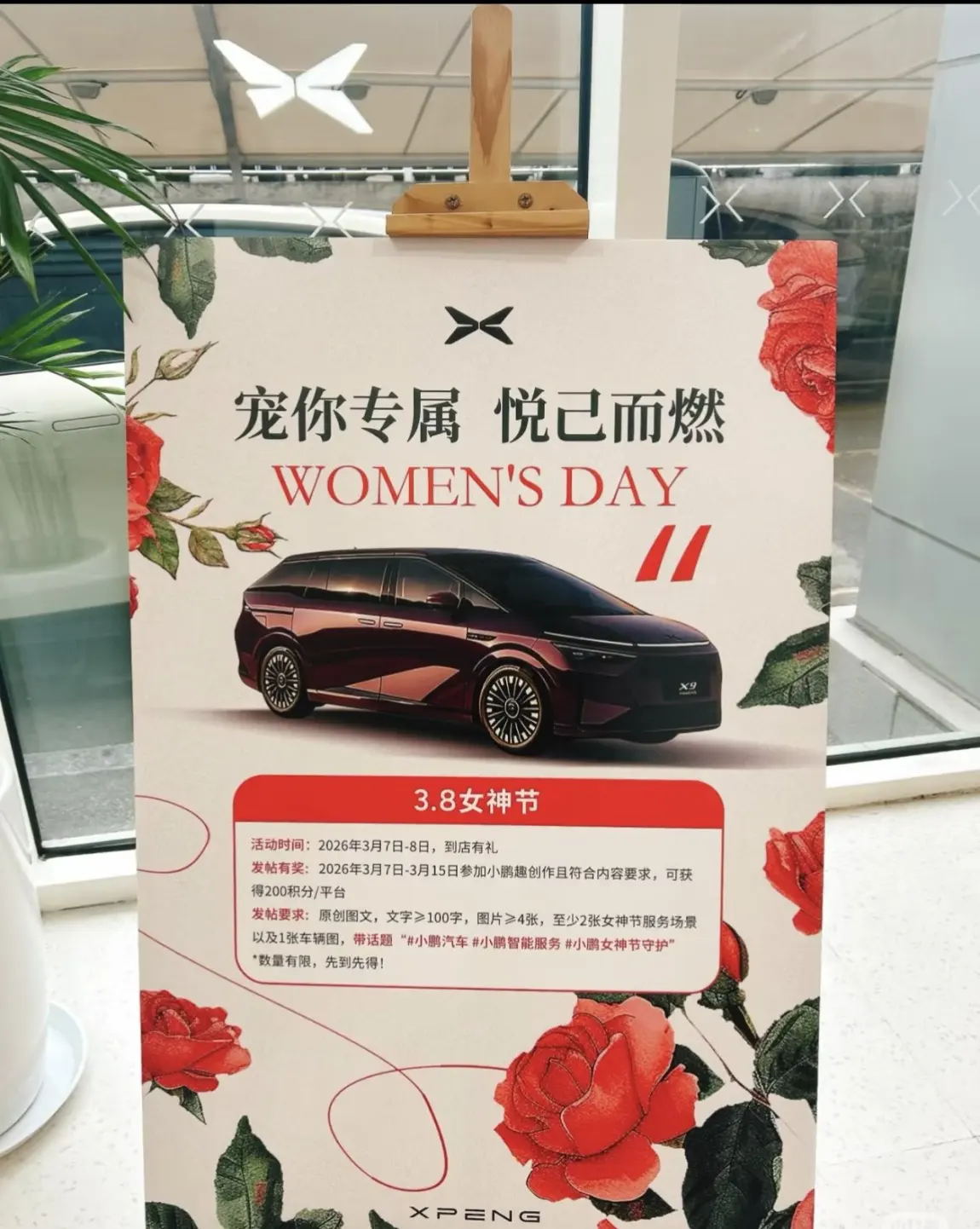 在这个属于我们的节日里,小鹏用细节和温度,守护着每一位女性车主的美好。愿我们都能在自己的节奏里,闪闪发光,自在前行✨