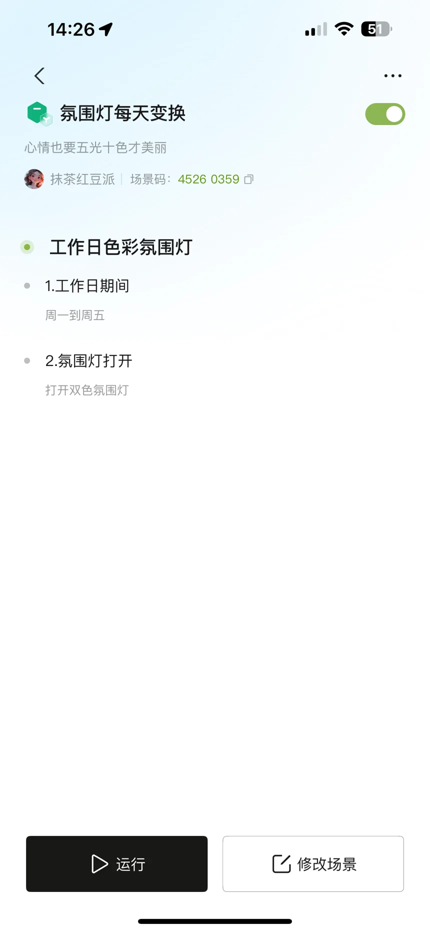 三八节随机添加一个氛围灯每天变换的智慧场景,感觉心情也随着灯光的变化而变得很好了呢。