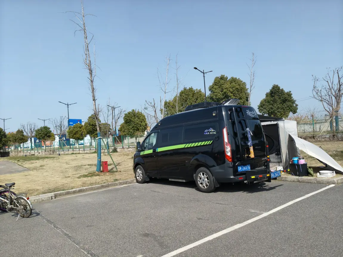 #我和春天有个约会# 自从有了小鹏X9,原本属于房车的短途、旅行露营的活儿就被小P承包了,在绍兴越城区居然发现了这么好的房车露营基地,有超大的花海草坪,趁花还没开,带着小白撒欢一下,睡了一晚,发现X9当床车不躺平用二排睡一晚都很舒服。