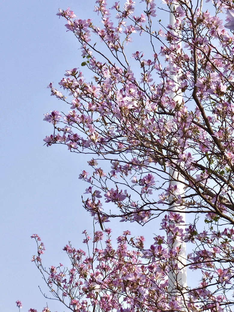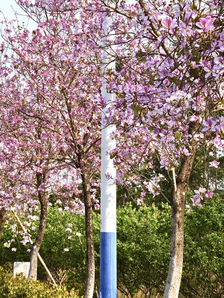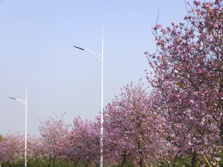 春日氛围拉满:大片的粉色紫荆交错,湖边的芦苇荡随风摇曳,还有木栈道可以散步,非常适合亲子和家庭出游。