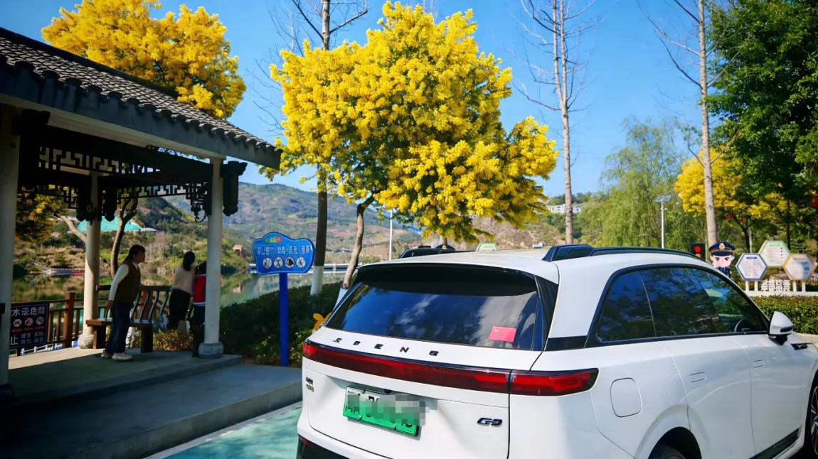 #小鹏影像记录家# 黄花铃木开了呀,满树的小铃铛挂满枝头,风一吹就晃呀晃,阳光洒下来,连空气都变得金灿灿的✨把车停在湖边步道,G9的白车身和明黄的花树撞在一起,随手拍都是画报感!打开全景天幕,抬头就是摇曳的花影,躺在车里看花,这才是春天该有的样子嘛~