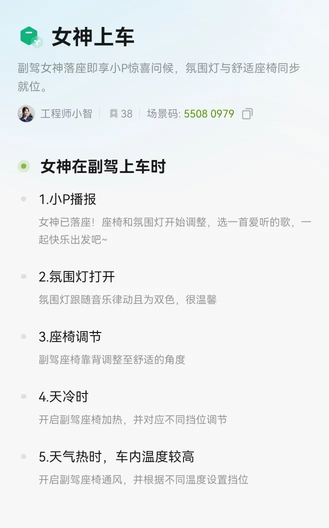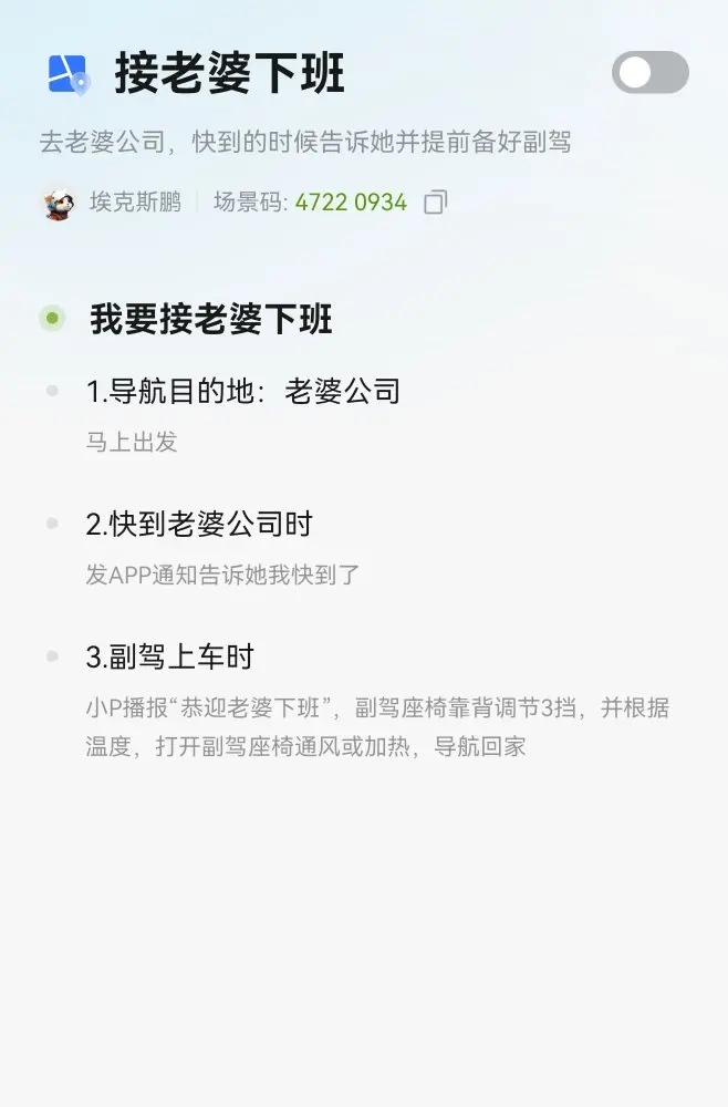 嘿嘿,偷偷给小p加了这两个场景,哈哈哈哈老公开车的时候吓到了,笑死😂😂,小鹏智慧场景太好玩了,很多与时俱进的更新。