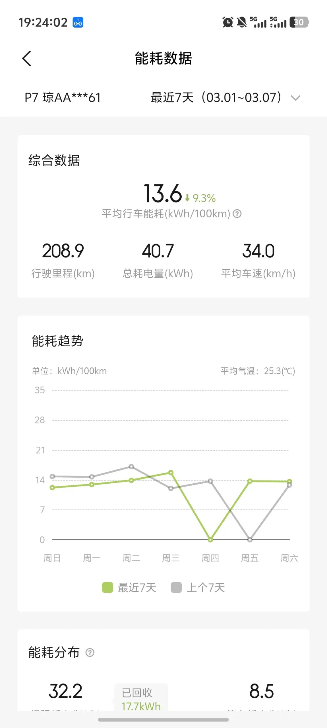 - 动能回收:回收了17.7kWh,相当于免费跑了几十公里