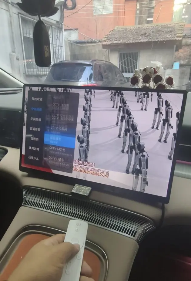 我把家里的机顶盒装车上了,可以随时看电视和追剧。X9的后排沙发比家里的还舒服。