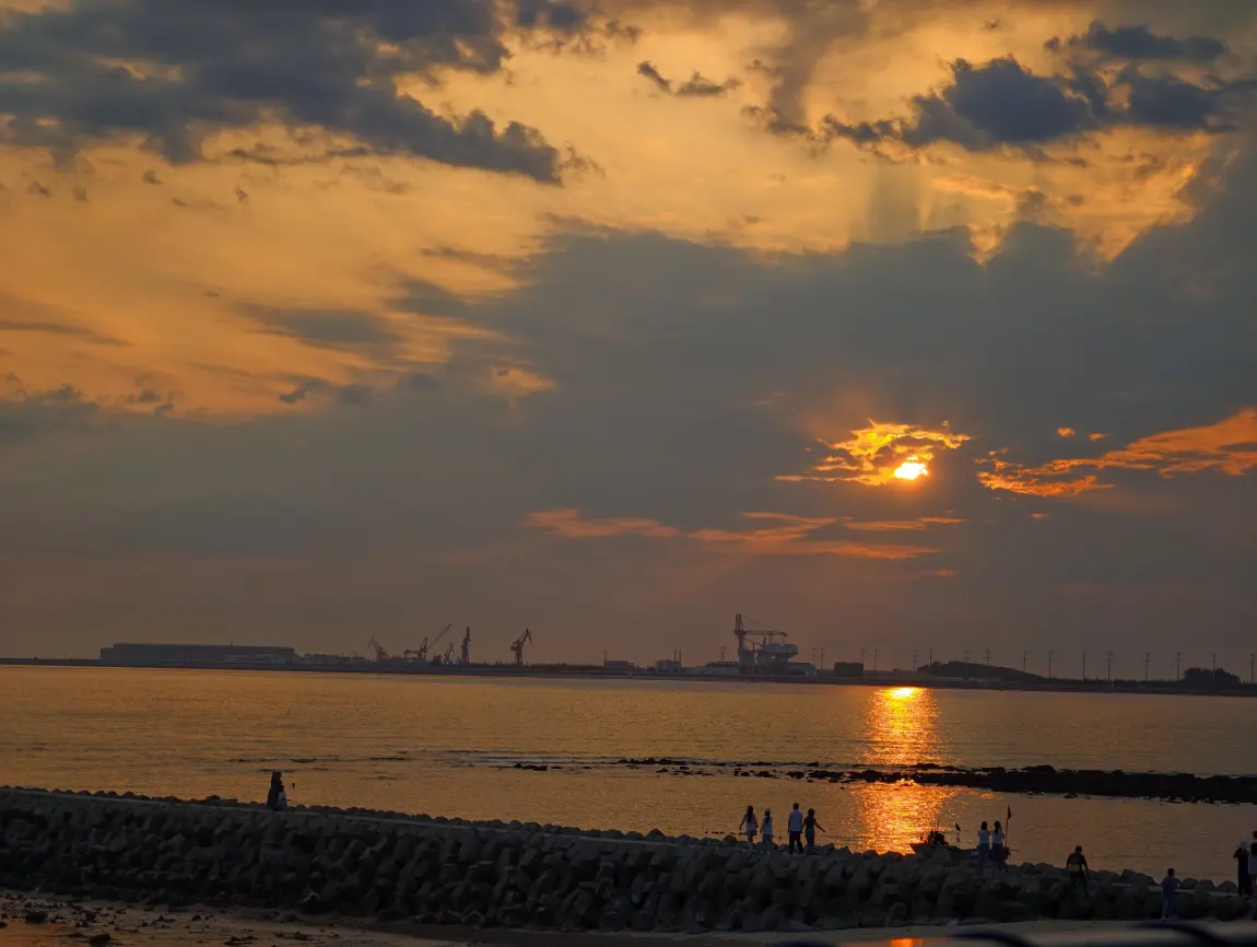 车停在路边,5米就是沙滩,夕阳美得不像话,孩子玩的不想家!