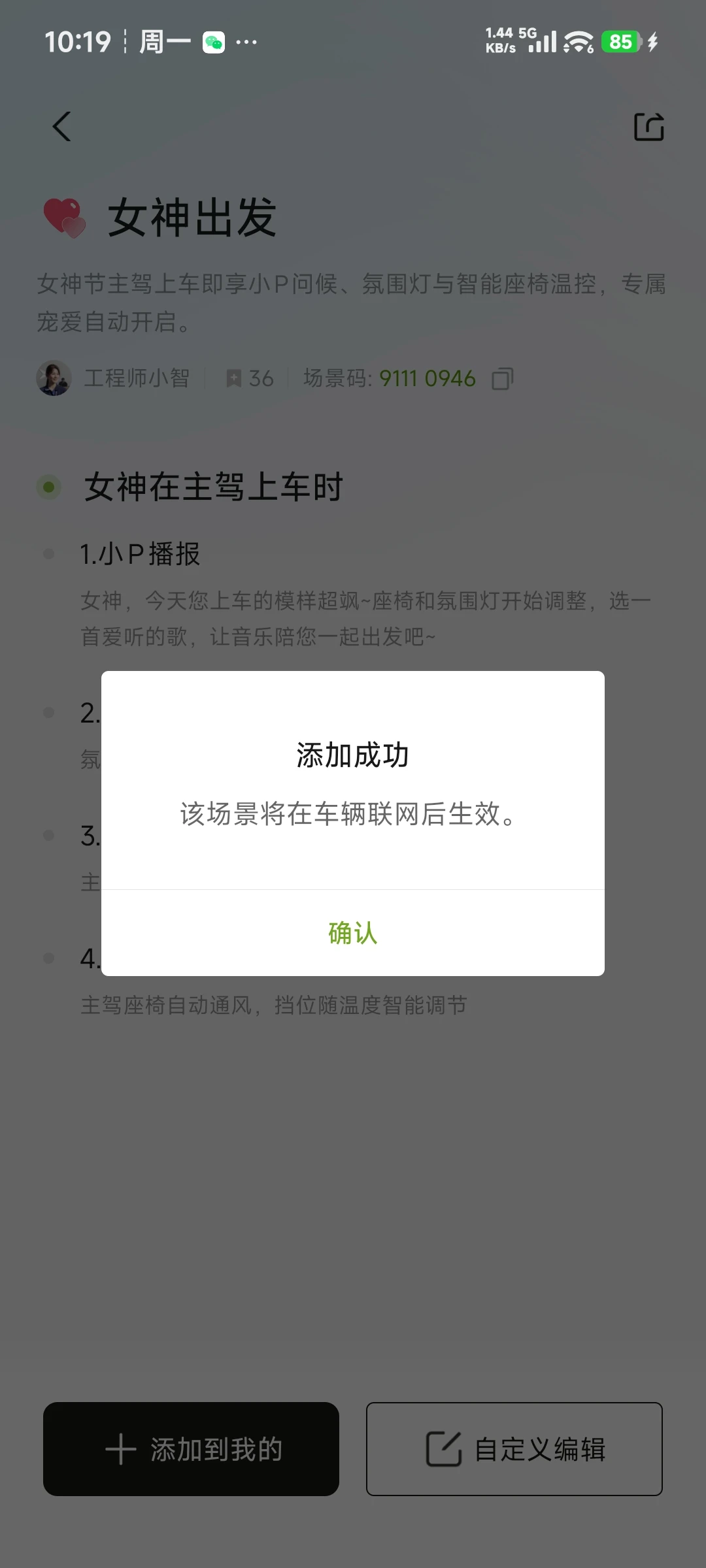 #玩转智慧场景# #今天晚上接老婆,试试这个码春日渐暖,女神节和小鹏智慧场景更配~一个指令,就能拥有专属的车内仪式感:舒服的座椅、温柔的灯光、喜欢的歌单自动就位,小小的细节,却能让每次出行都充满幸福感。智能不止是科技,更是藏在车里的温柔。祝所有女神,自在如风,一路闪耀!