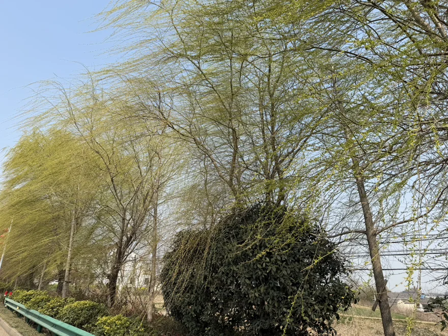 春天到了,春风拂柳丝绦垂,绿影婆娑满岸柔
