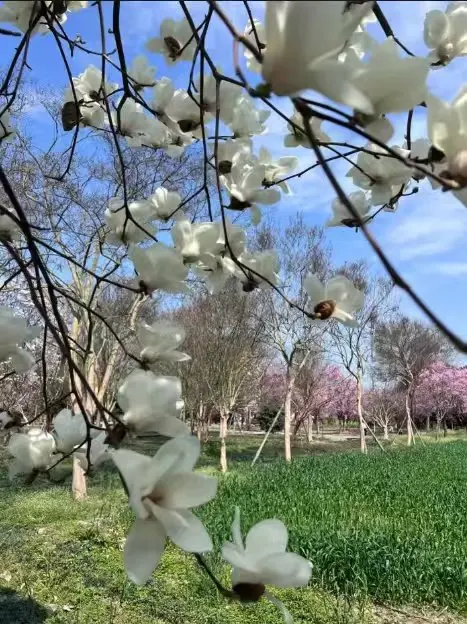 #我和春天有个约会# 昨天早起去给小鹏车充电,路过小区外的河边步道,本是急匆匆的脚步,却被一阵淡淡的甜香绊住了。抬头一看,几株垂丝海棠全开了!粉白的花瓣带着晨露,风一吹就簌簌往下掉,落在青草地和步道石板上,像撒了一层碎玉。我赶紧掏出手机定格这一幕。去年这个时候,这里的海棠还只是零星几朵;今年雨水足、气温暖,竟开得这么热闹。一位阿姨带着小孙女在树下捡花瓣,小姑娘把花瓣小心翼翼放进小竹篮,说要做 “春天的书签”。原来春天从不是轰轰烈烈的宣言,而是这些藏在日常里、不经意撞见的小美好。