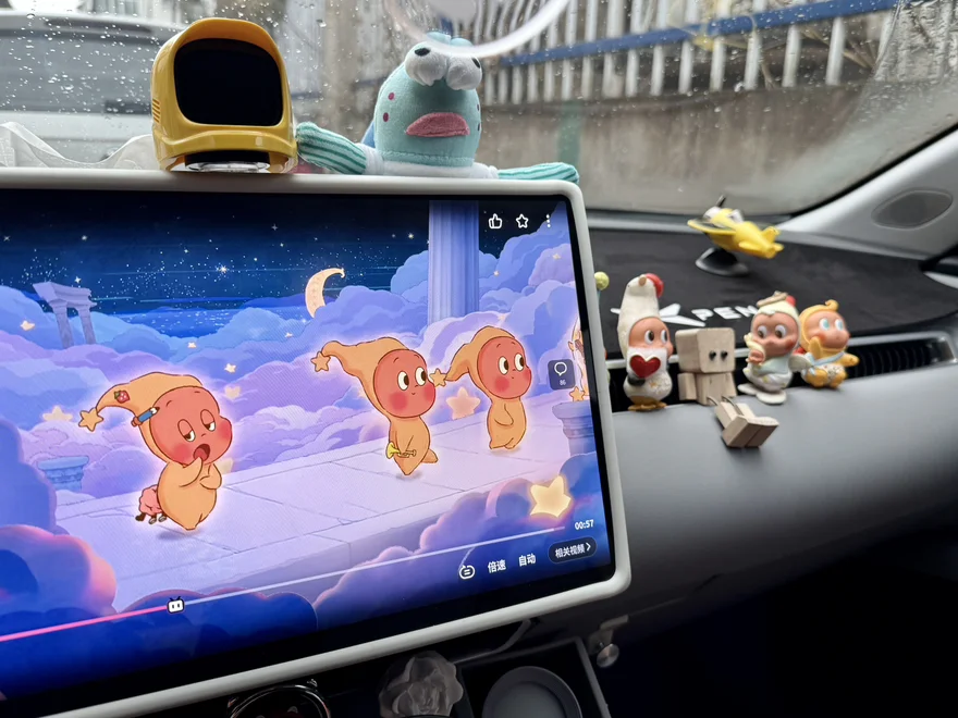 中控屏正放着可爱的动画,仪表台上的星星人小摆件们挤挤挨挨,都是孩子喜欢的。每天他一上车就被这些小玩意儿吸引,眼睛亮晶晶的,一路上都盯着屏幕,嘴里还跟着哼动画里的歌。我看着他的笑脸,觉得车里不止是交通工具,更像个移动的小乐园,装着我们俩的快乐时光。