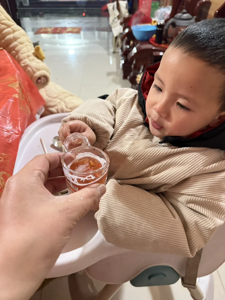 过节难免喝酒,我在喝酒时候他睁着大眼睛,也要和我碰杯。看着他小嘴巴抿着的样子可爱极了,愣是把我“灌醉”。看着他满足的小表情,我觉得平凡的日子里,这样的小甜蜜最珍贵。