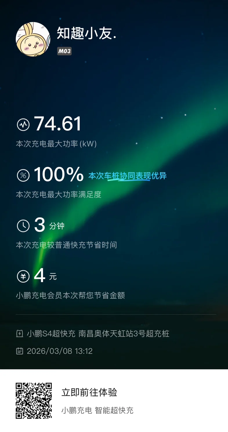 分享我的春日用车小技巧~补能篇:一:我习惯去小鹏自营的充电站充电,在小鹏汽车app内打开即插即冲,每次充电时只需要插上充电枪,自动识别开始充电,不需要手动点击和预付费,非常方便~!支持官方积分抵扣充电费用,积分直接当钱花!二:小鹏充电桩设备也比较稳定,不会出现跳枪 输出功率不平这种小问题,并且支持满充100%,电池每半个月到一个月需要校准一次电池效率,所以每半个月或一个月需要充满电一次,很多第三方只支持到90%或者95%。三:在充电中心每月会有充电会员活动,可以领服务费优惠券,充电需求量越高的用户,对应充电登记也会提高,也能领面额更大的券,官方社群也不定时有充电券优惠活动,不知不觉又省下了一顿早餐~