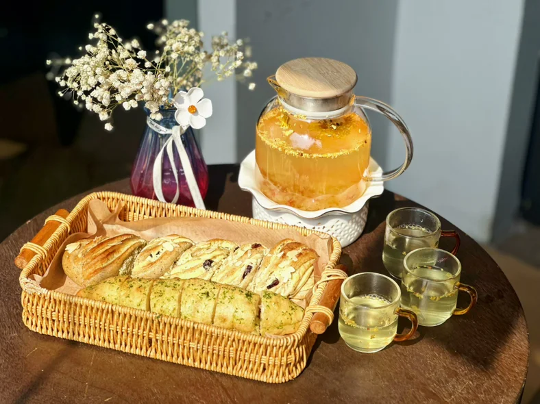 春天怎么能少得了下午茶和窑烤面包🥯。再来一节插花课真的很nice