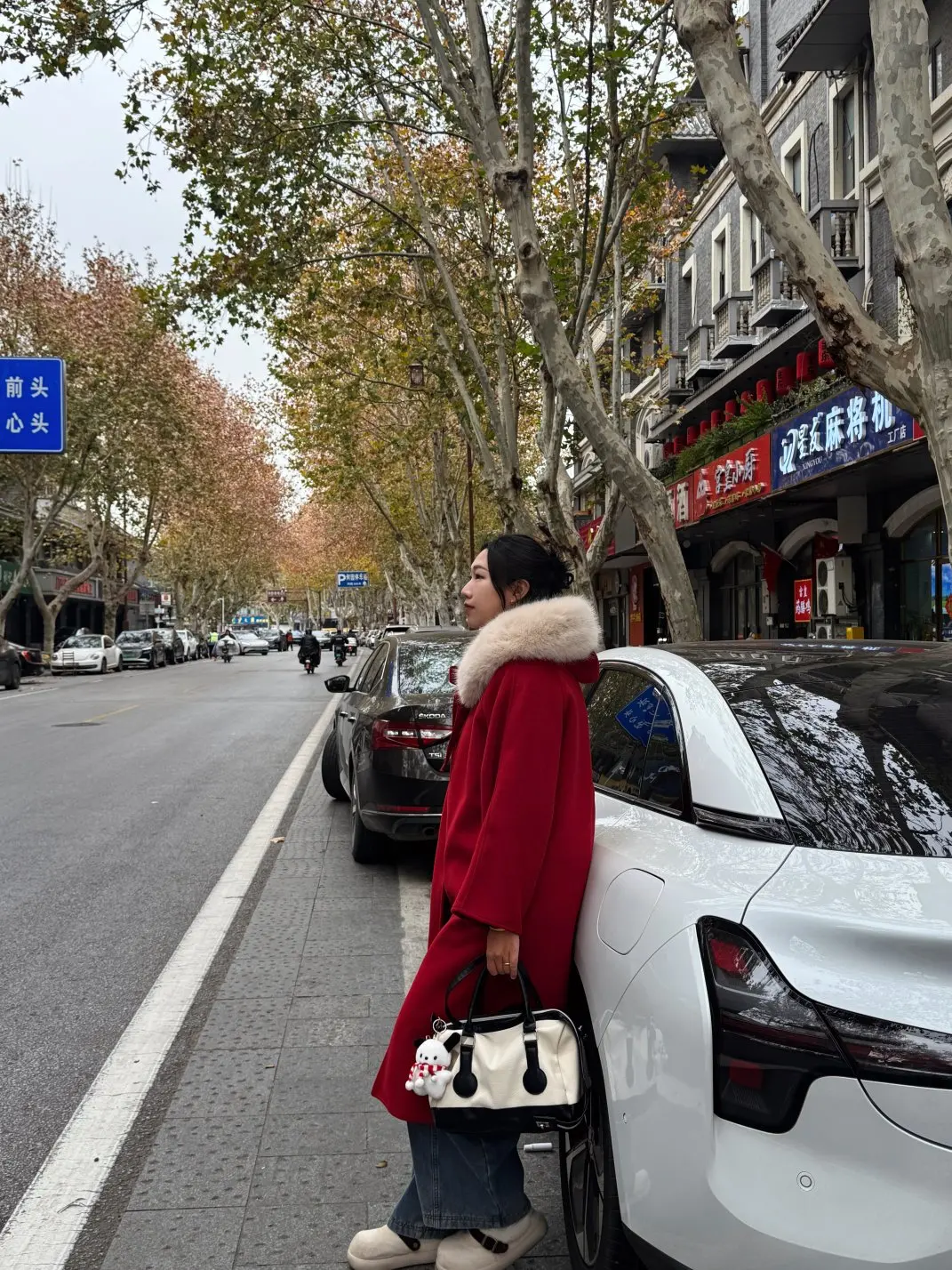 今天开着小鹏出门炸街啦!路过梧桐道时被这抹春色狠狠戳中~红色大衣配白色座驾,回头率直接拉满💯 阳光透过树叶洒在车身上,连倒影都在发光耶!