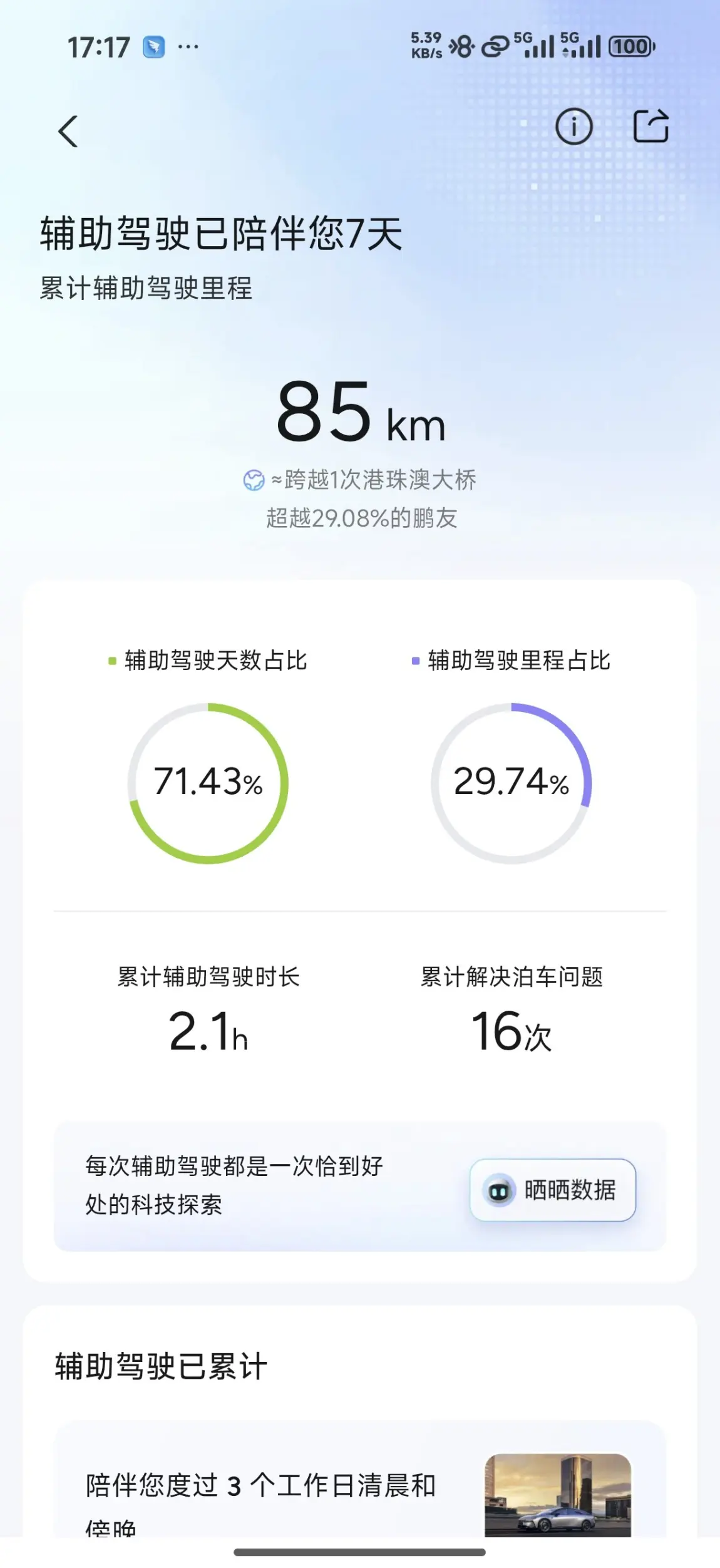 之前是个无车族,每次都给打车软件做贡献,会员等级高高的。买了小鹏过后充一次电的钱都可能不够我之前两天打车!更不用提还有智驾让我舒舒服服的开车!