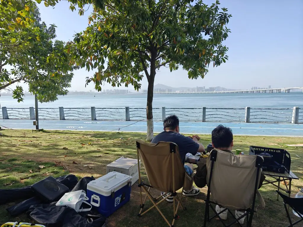 🌈🌈本次露营地点选择在了厦门湖里区,定位:高崎道即可, 为什么选这里呢, 第一:它是海边可以看海,第二:它可以把车停旁边用来对外放电,泡茶什么的很方便,且不会有交警贴条!第三:就是它旁边就有洗手间,哈哈非常的方便有没有!