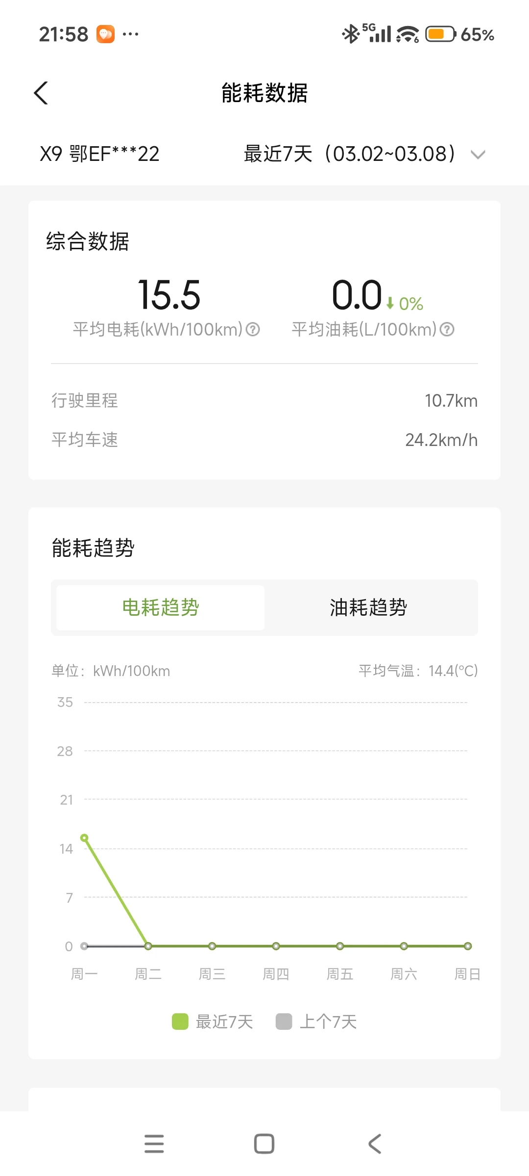 温度回暖后,这么大的车在城区内低速行驶很省电!如果再把动能回收开的更高一些应该会更省电更节能一些!但是我发现最省电的办法就是少开,或者不开😁