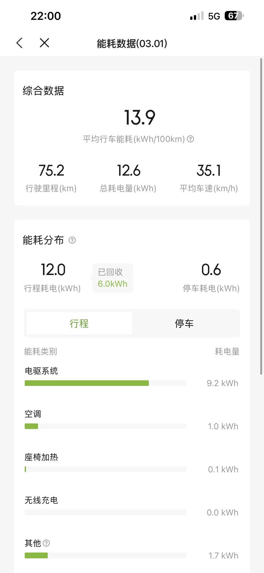 自提车起跑到过最低的能耗,我总结了一下,最大的影响因素是天气,最近天气转暖以后,磷酸铁锂的电池续航就稳定很多了,还有就是城市慢速路段,堵车开的比较慢的情况下也省电😓