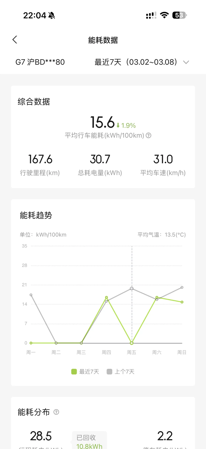 #能耗报告# 天气渐渐暖和了,我的G7的能耗也终于开始下降了。刚提车那会儿,能耗总能控制在13、14的样子,可是冬天的时候,能耗却总是飙升到18、19,有时甚至能到21左右,让我一度非常担心,但是现在,能耗终于又回归到15左右,看来能耗真的很受气温的影响啊