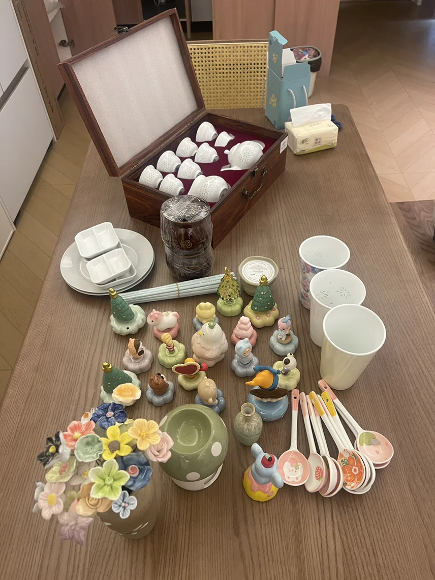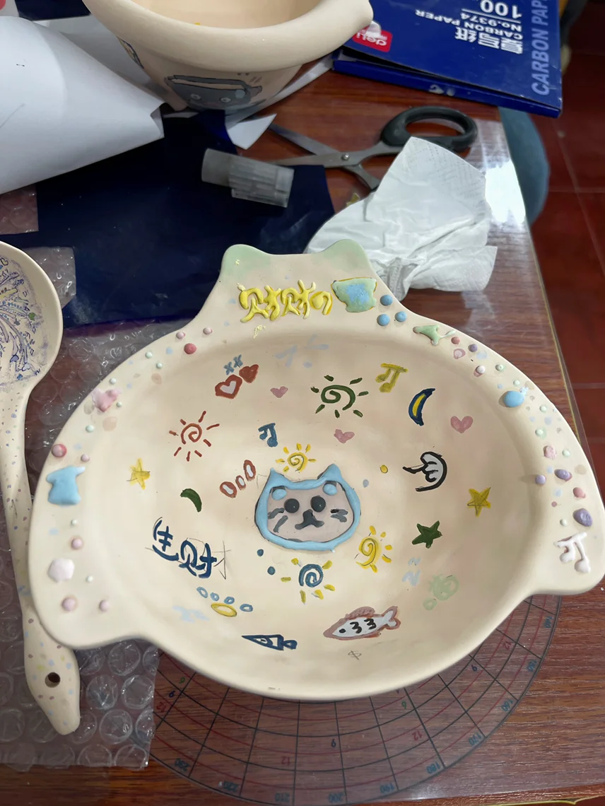 #我和春天有个约会# 这周末,开着小鹏,跑去景德镇玩了一玩,果然没人能空手离开景德镇,哈哈哈哈。图一,爆火的转转 七彩玲珑杯 白釉玲珑茶具 左上捡的瓷器 瓷花 1元一个点勺子等等 图二,没想到树上都是挂的勺子,可有意思了图三,既然来了景德镇,肯定要体验一下手工,买了素胚,自己diy,期待烧制后的效果!