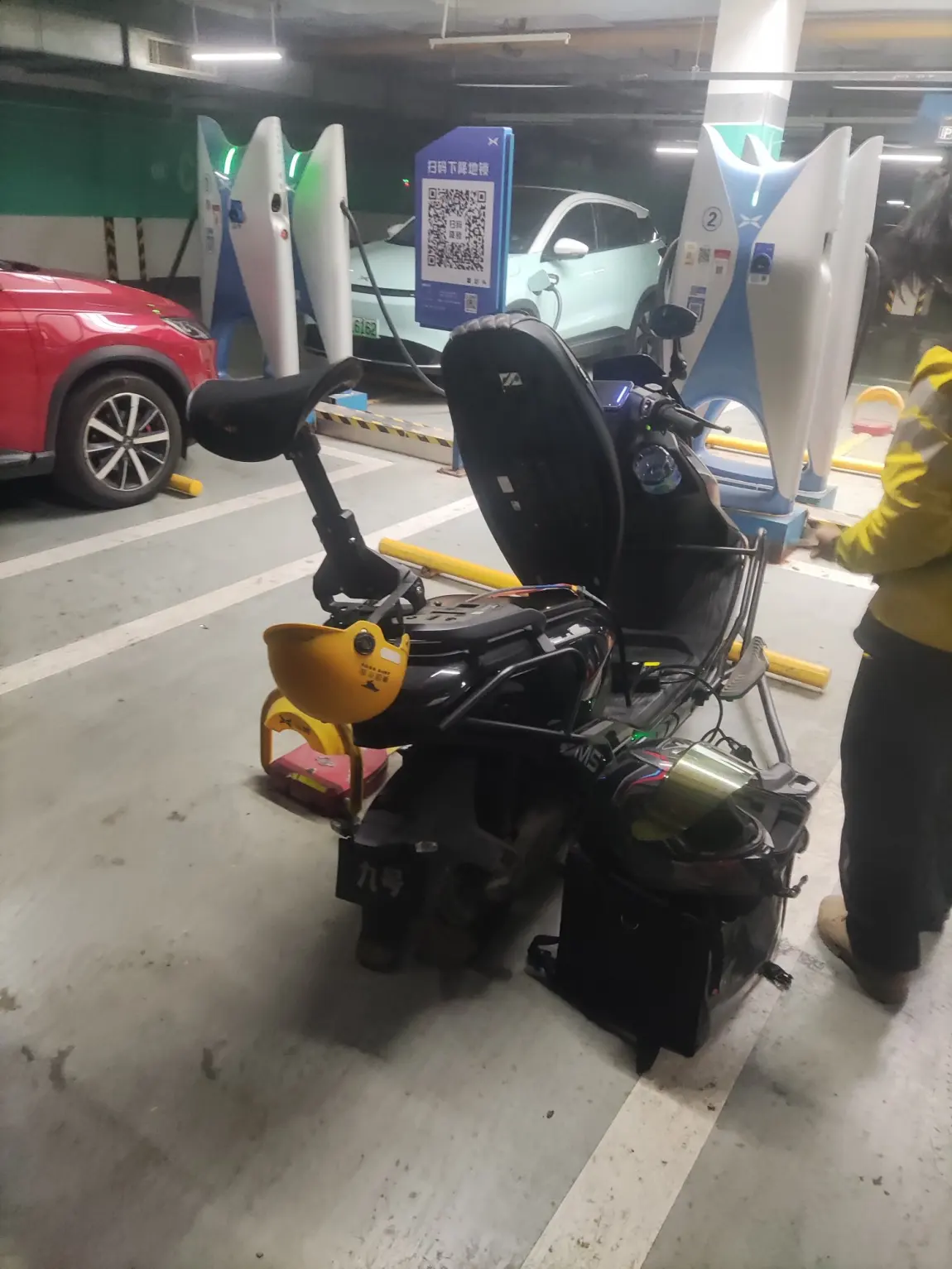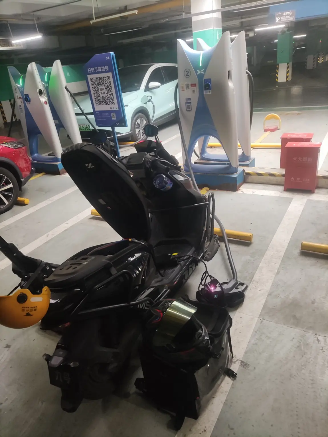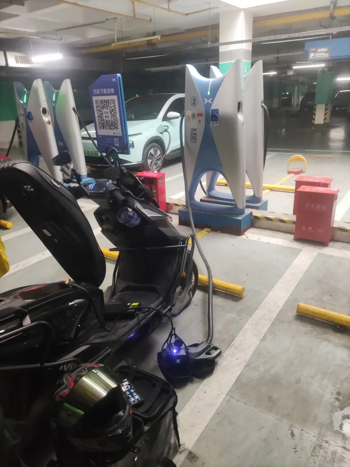 第一次看到电动摩托车充电,可能早就有了,只是我刚看到。小哥说自己改装的,呼呼的充电声,小哥有时就坐在充电桩位置等待。