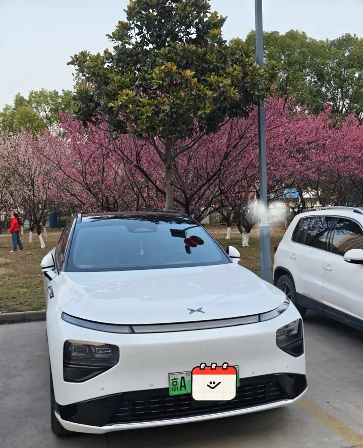 上了快速路我就开了NGP,手轻轻搭在方向盘上,能看看窗外的树和天,风从车窗缝里钻进来,带着点春天的味道。到了桃花林那边,满院子的香气扑鼻,路有点窄,停在体育场旁边的空地上正好充电,刚好和粉粉的桃花同框,拍出来的照片还挺好看。