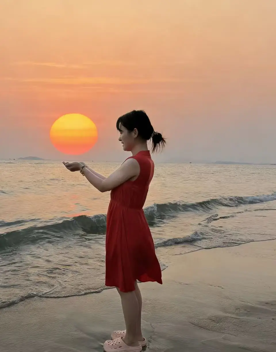 开到沙滩门口,春天不一定看花,,还可以看看夕阳
