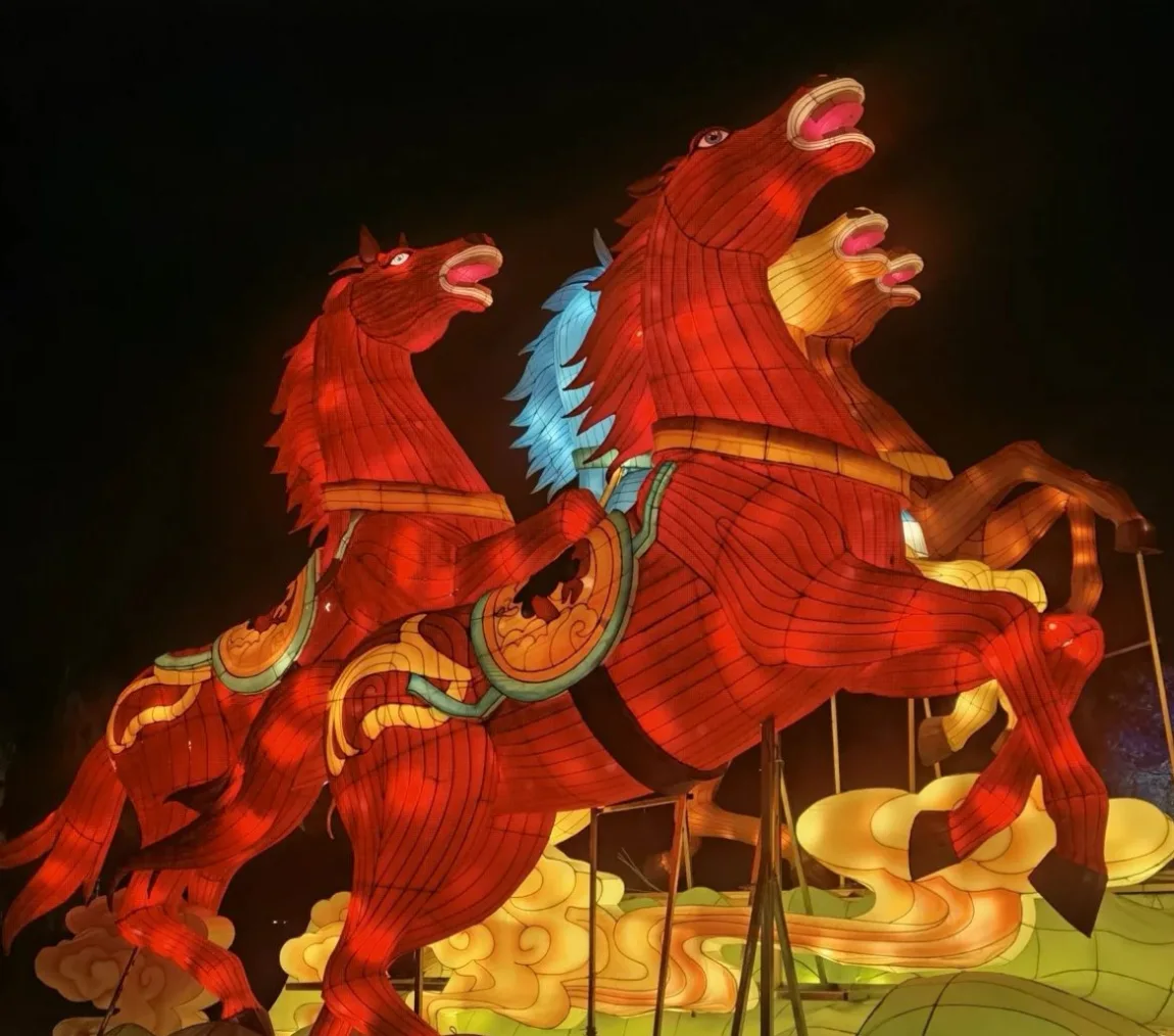 圆明园的马年花灯,红马奔腾在夜色里🏮,热闹又有劲儿。